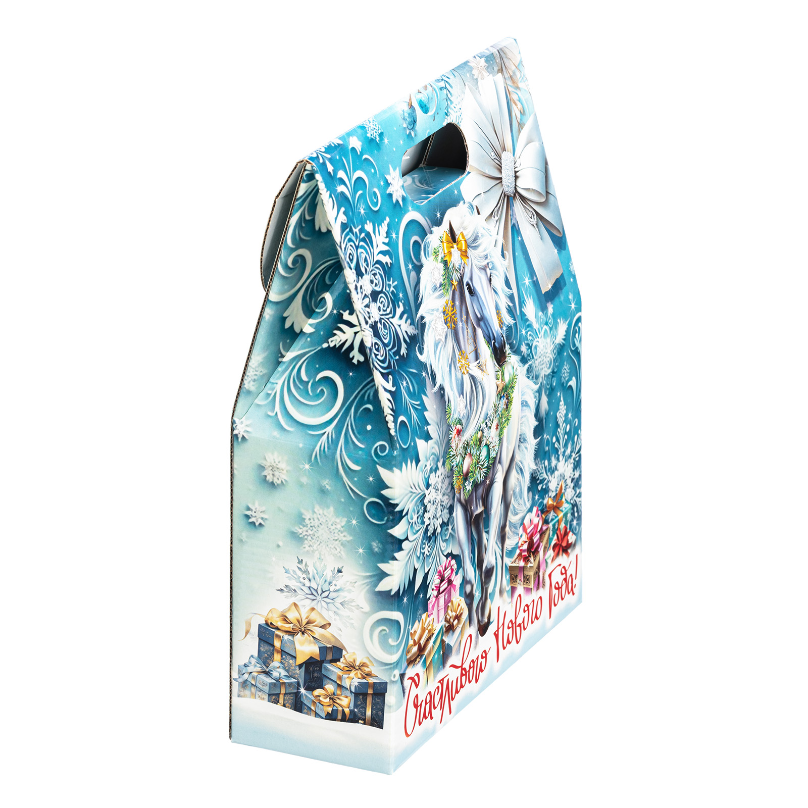 Новогодние сладкие подарки с изображением символа года - это нестареющая классика. Подарочный набор “Белоснежная” - это идеальное сочетание креативной подарочной упаковки и вкусного разнообразного конфетного состава. Подарок представляет собой небольшую картонную сумочку с изображением белой волшебной лошадки на фоне зимнего леса. Снизу красуется контрастное поздравление, а наверху есть удобная ручка. Внутри содержатся вкусные лакомства, с которыми каждое праздничное чаепитие приобретет еще более торжественное и веселое настроение. Подарочный набор - универсален. Его можно вручить как ребенку, так и взрослому.