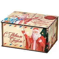 Подробнее о доставкеИз года в год огромной популярностью пользуются подарки с почтовой новогодней символикой. Подарок «Посылка из Устюга» представлена в разделе дерево. По форме это посылка. Сверху короб перевязан веревкой. Цветовая гамма светло-бежевая. На рисунке изображены Дед Мороз и Снегурочка. Они приветствуют всех гостей на празднике. Кондитерский состав весом 1000 граммов порадует отличным сочетанием и разнообразием. Каждый член семьи найдет для себя любимое лакомство к торжественному чаепитию. Данный презент можно подарить как ребенку, там и взрослому. Все подарки имеют декларацию соответствия.
